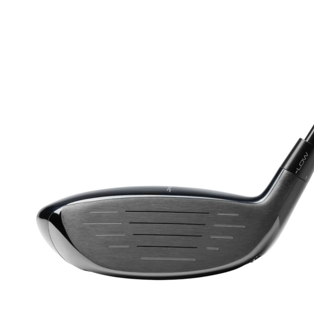 A wrap-around composite crown saves critical weight high in the head, allowing the centre of gravity to be positioned lower. This lower CG promotes higher launch and reduced spin, helping the ball rise easily and carry more consistently without feeling overly lively or unstable through impact.